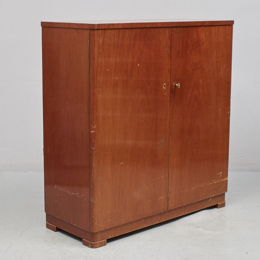mahogny. Bredd: 110 cm. Djup: 44 cm. Höjd: 115 cm, nyckel