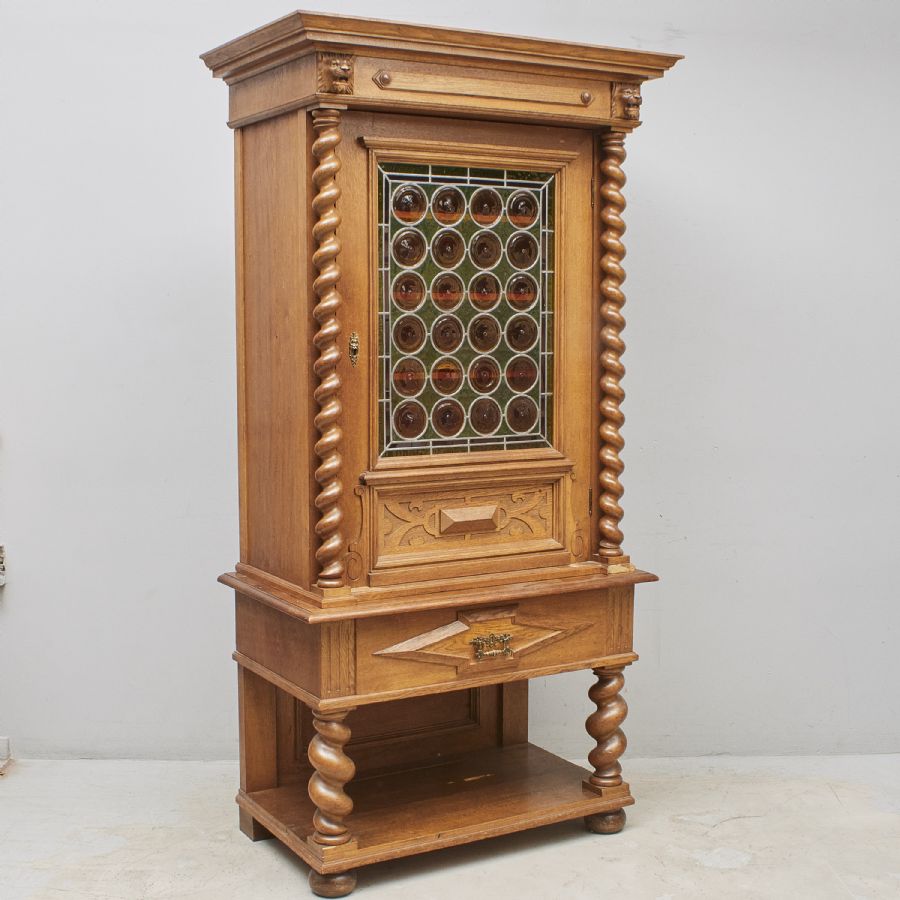 sent 1800-tal, ek, blyglas. Bredd: 108 cm, djup: 62 cm, höjd: 207 cm, nyckel