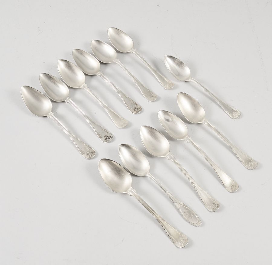 6 st, silver, 1800-tal. Längd: 22 cm, vikt: 330 gr ca