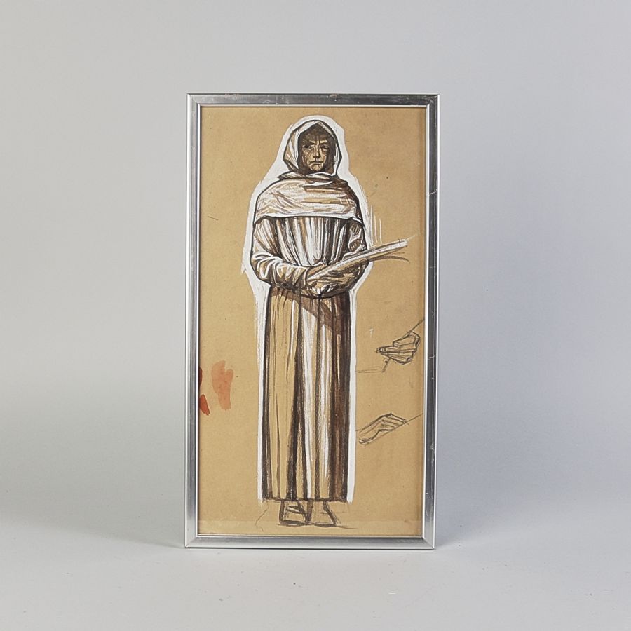 Skiss, Olle Hjortzberg (1872-1959), (tillskriven), Sverige, ej signerad, man, yttermått inklusive ram: 47x26 cm