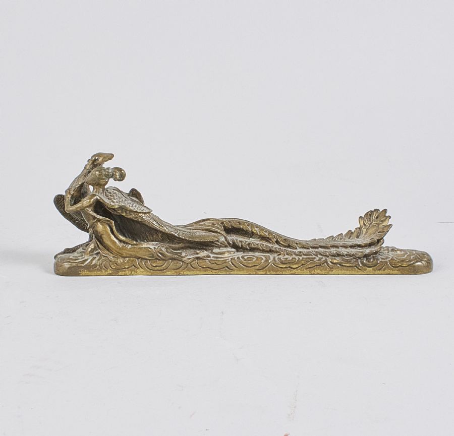 brons, Asien. Kvinna med flöjt & Fenix, Längd: 22 cm. Höjd: 7 cm