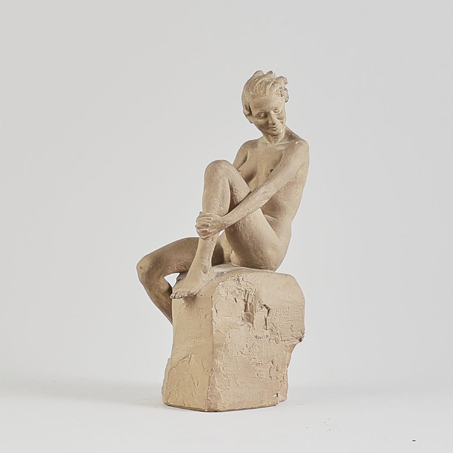 Erik Hedland, signernad, sittande kvinna, gips. Höjd: 32 cm