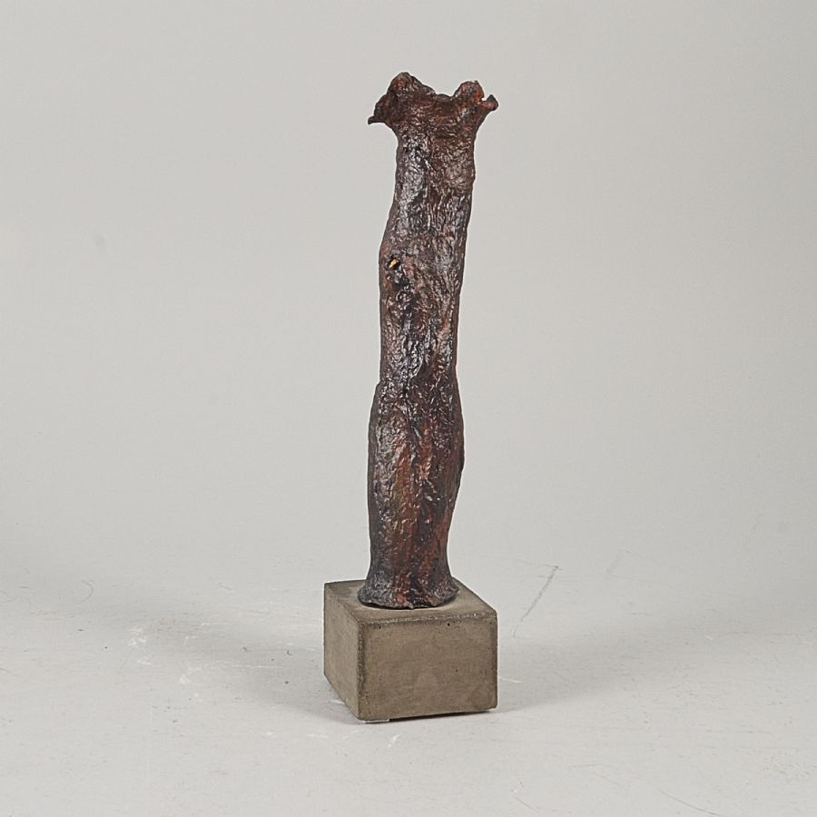 Leena J Komstedt, Papier Mache/akryl, "Ur Sten 2". Height: 25 inkl sockel,