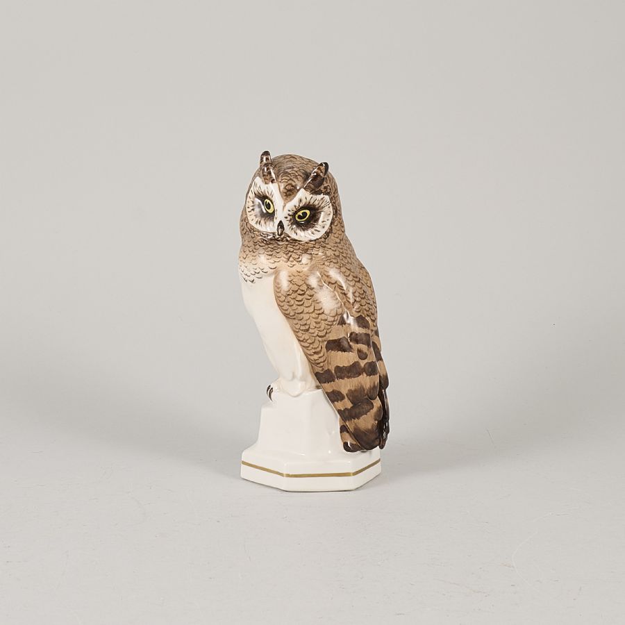 Porslin, Uggla, Katzhütte. Höjd: 21 cm