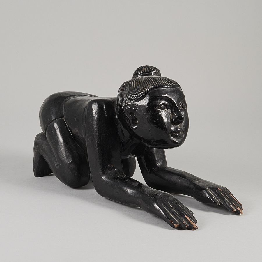 trä, Buddha, svart. Höjd: 21 längd: 40 cm