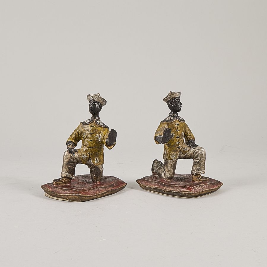 Ett par, metall, bemålade, Asiater. Höjd: 14 cm