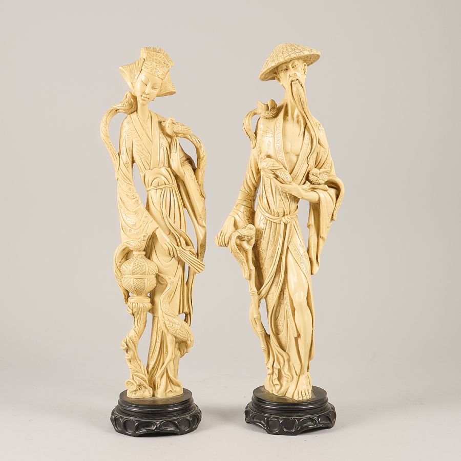 Ett par, metall, bemålade, Asiater. Höjd: 14 cm
