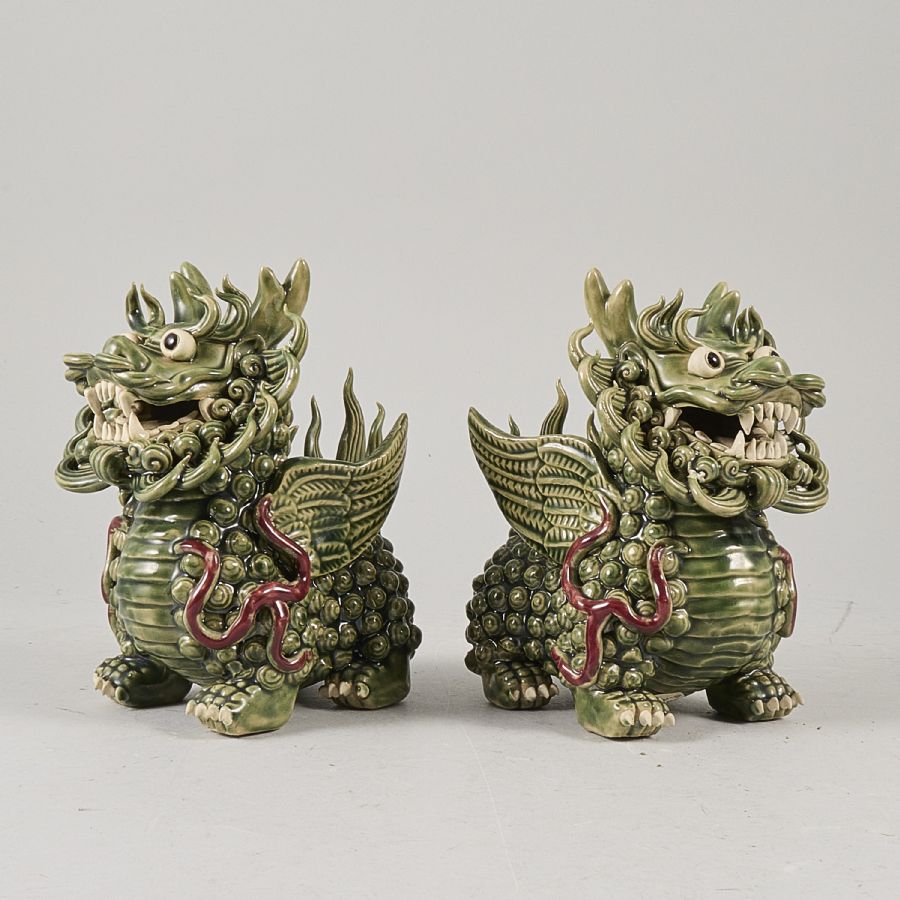 Ett par, Kina, drakar, keramik. Längd. Längd: 15 cm. Höjd: 20 cm