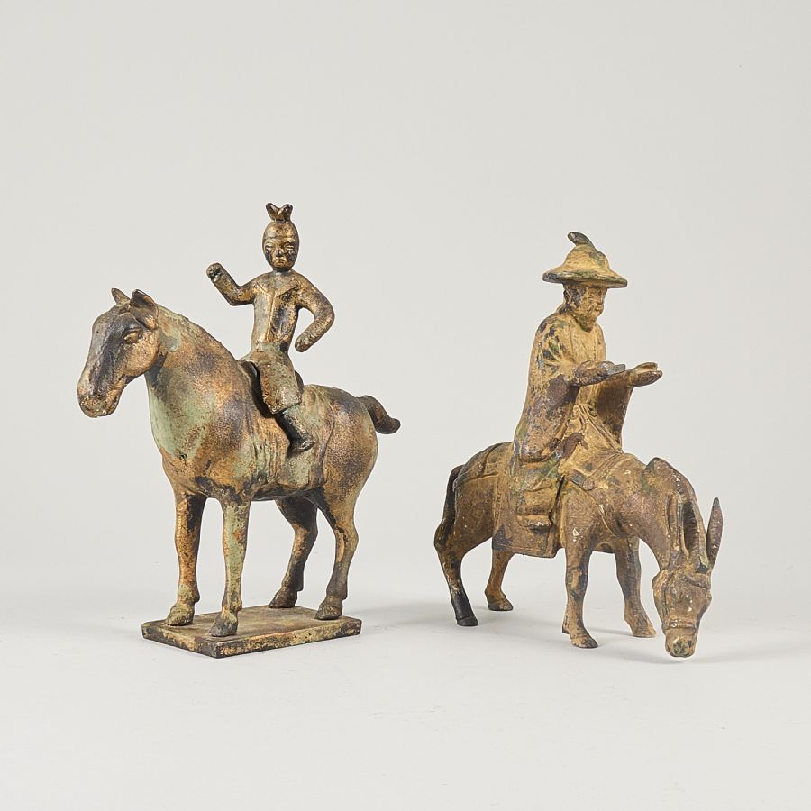 2 st, figurer till häst, metall. Längd: 21-24, höjd: 24-26 cm