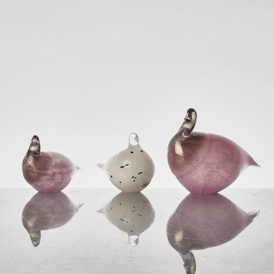 3 st, Meri Lasi, Finland, Konstglas, fåglar. Höjd: 10-16, längd: 15-22