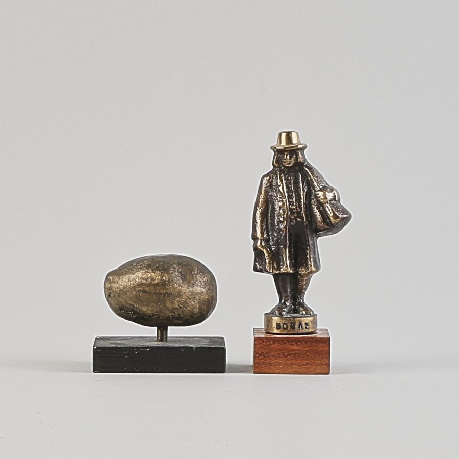 2 st, metall, Boråsknalle + Nolan. Höjd: 7-14 cm