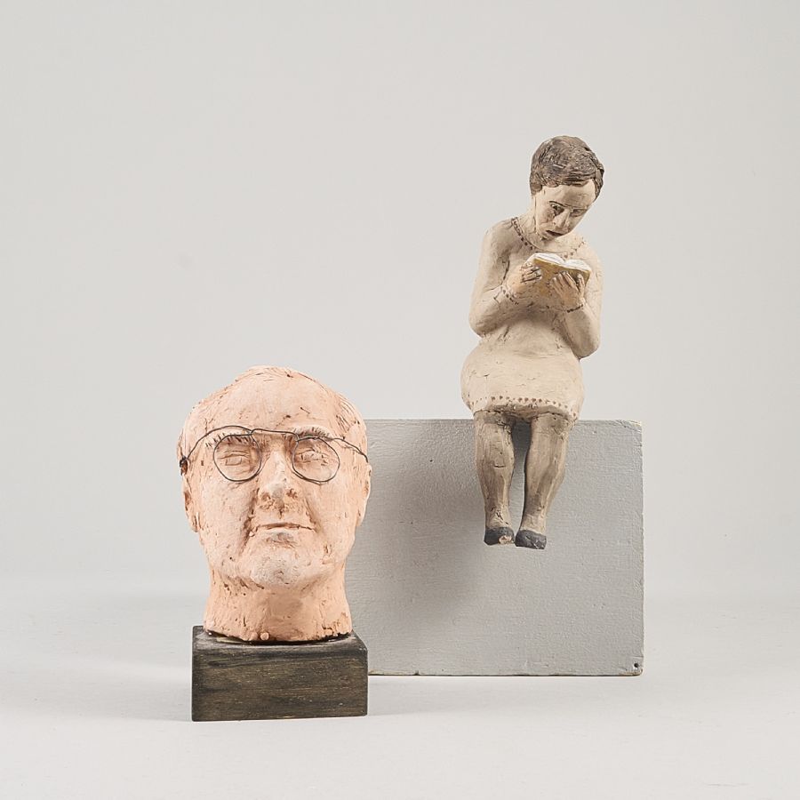 Skulpturer, 2 st, (tillskrivna), osignerade, huvud & sittande kvinna. Höjd: 13-20 cm