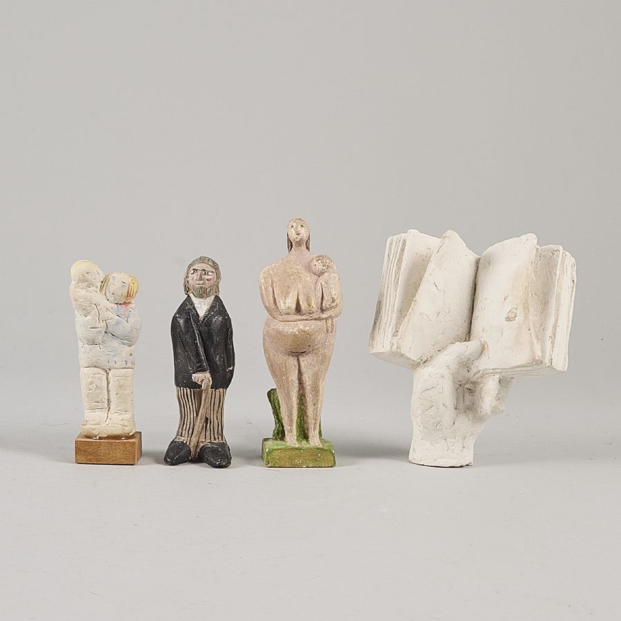 Skulpturer, 4 st, Signerat & Osignerat. Höjd: 10-12 cm