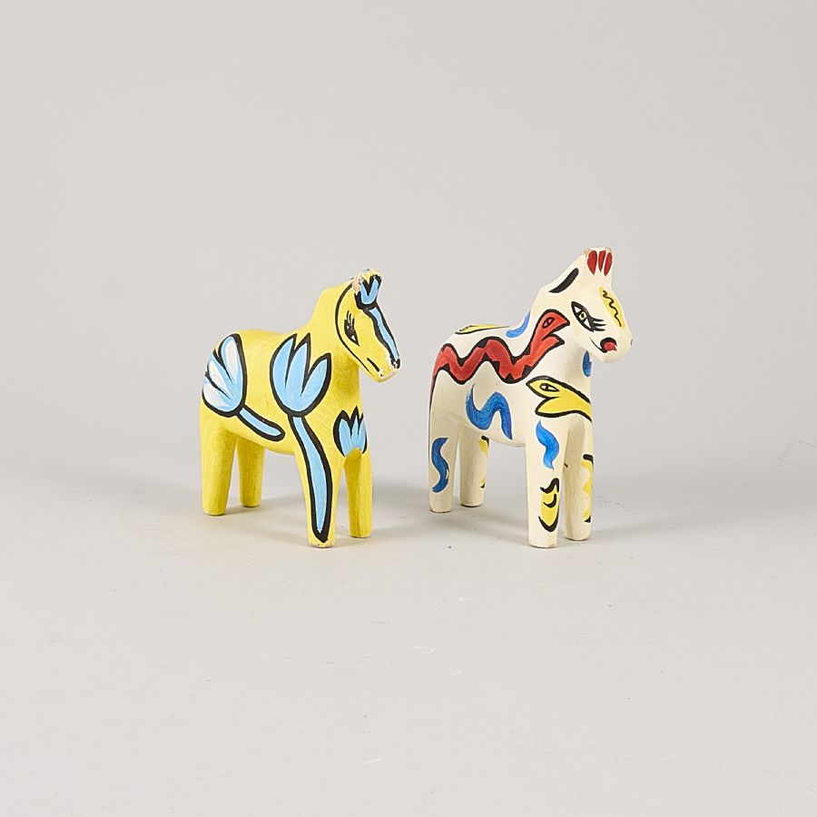 Skulpturer, 2 st, Trähästar. Höjd: 17 cm