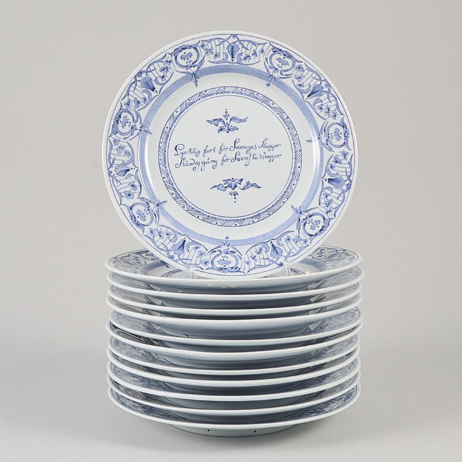 12 st, Rörstrand, 1700-tals kopia. Diameter: 21 cm