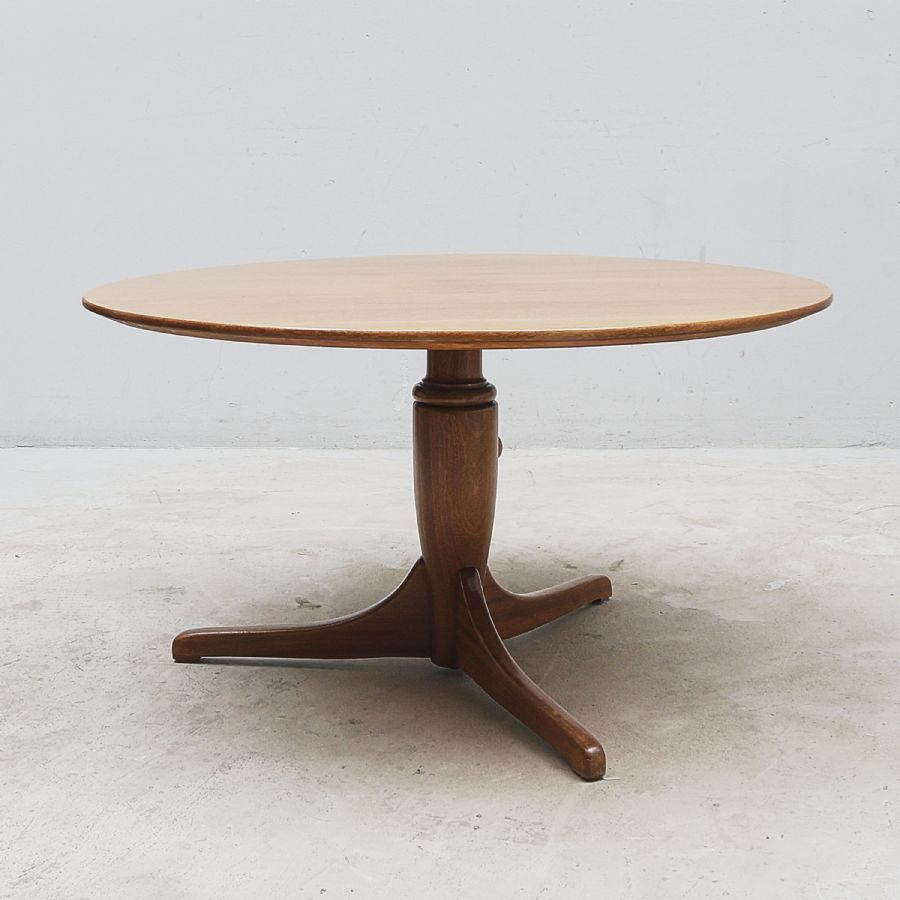 Soffbord, Josef Frank (1885-1967), Österrike, höj & sänkbar skiva på pelarfot, modell No971, mahogny, diameter: 100, höjd: 55-62