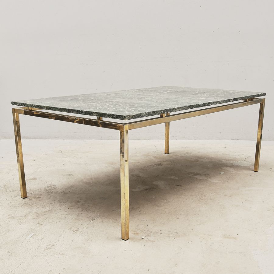 1970, tal, med stenskiva, underrede i gulmetall. Bredd: 140 cm, bredd: 80 cm. Höjd: 54 cm