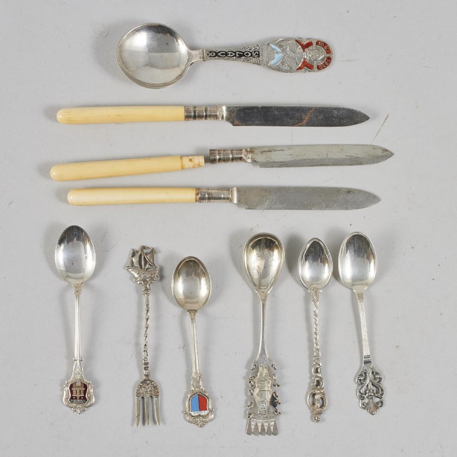 + knivar + gaffel, 10 delar, silver. Längd: 10-18 cm, bruttovikt: 140 g ca