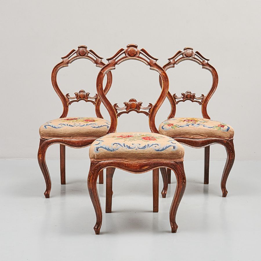 3 pcs, Victorian style, ett ryggstöd skadat.