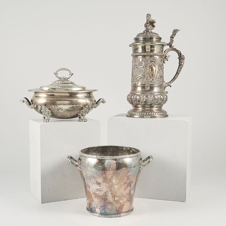 + ishink + karott, 3 delar, Nysilver, bland annat Grand Hotel AG Dufva. Höjd: 15-28 cm