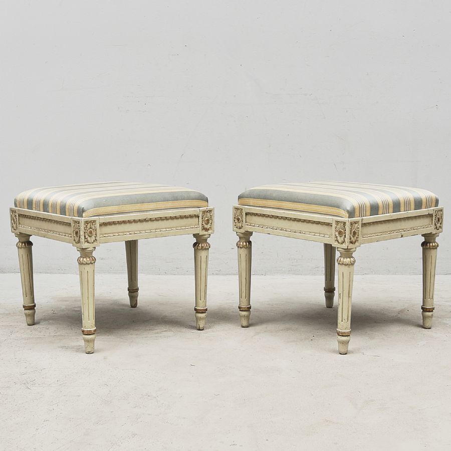 Ett par, Gustaviansk stil, skuren dekor, textilklädd sits, 47x47. Höjd: 43 cm