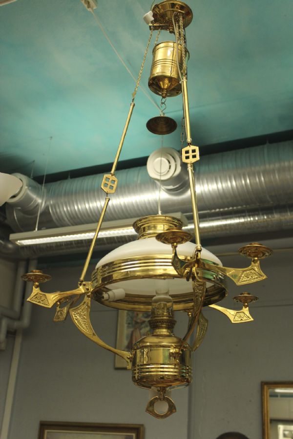 Liknande föremål: art nouveau fotogenlampa fotogenlampor jugend jugend-stil jugendstil ljuskronor metall mässing takfotogenlampa takfotogenlampor taklampa taklampor