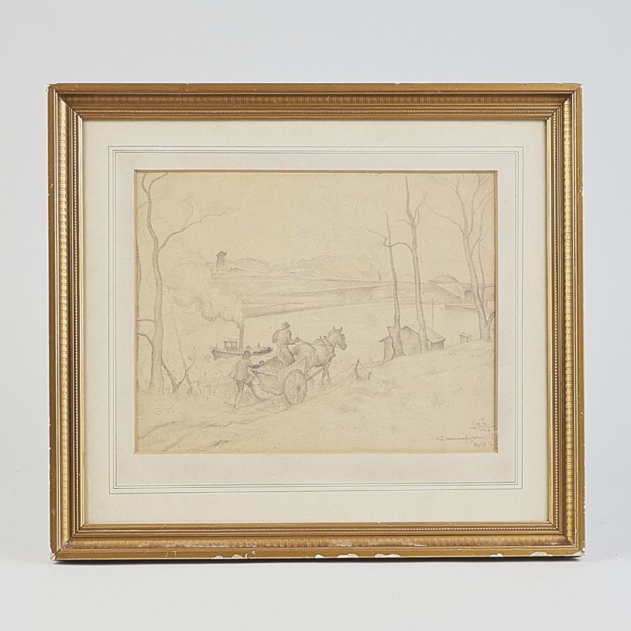 Teckning, Blyerts, Signerad, daterad 1926, "Vid Hammarbyleden, April -18", 21x27 cm, yttermått inklusive ram: 36x40 cm