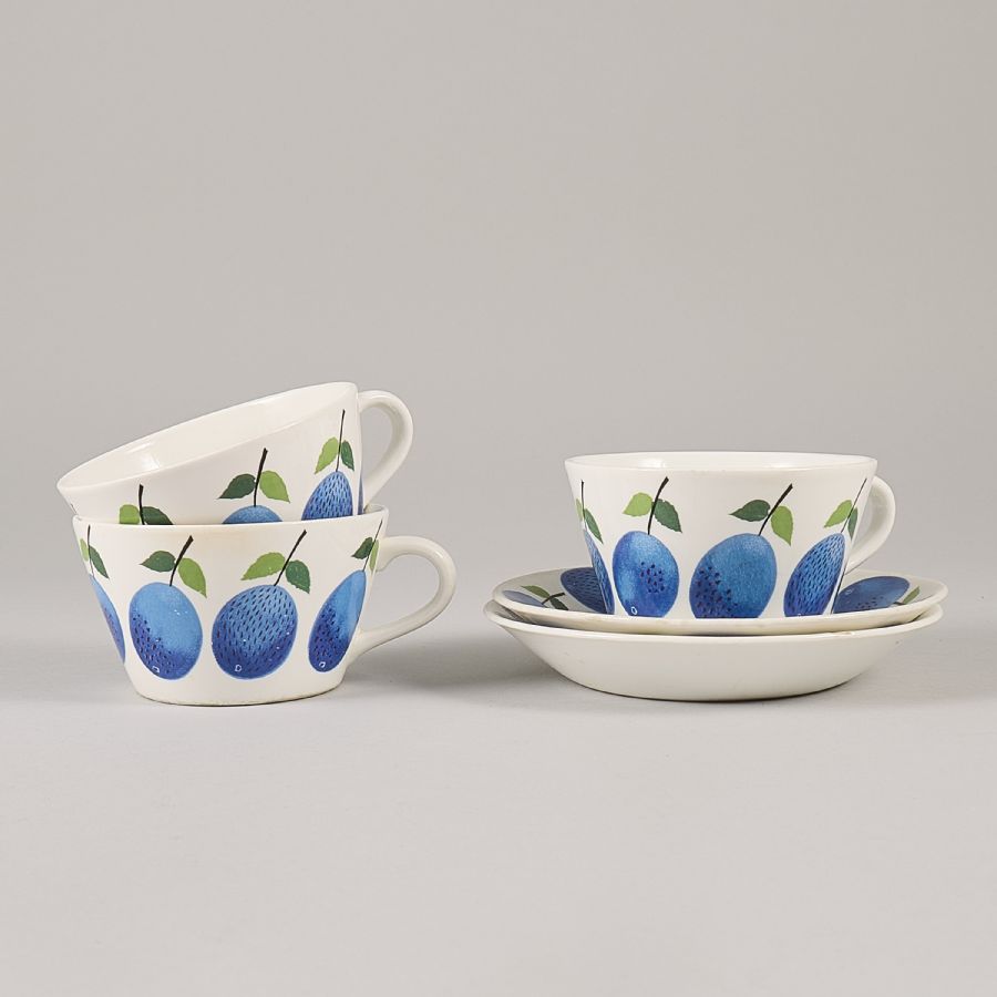 2 st + en kopp, Stig Lindberg (1916-1982), Sweden. Gustavsberg, Sweden, "Prunus". Diameter: 10 cm, height: 6 cm cm,