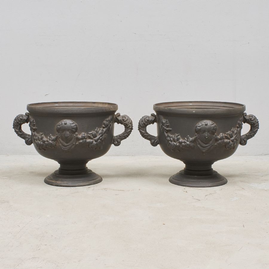 ett par, Gjutjärn. Längd: 60 cm, diameter: 45 cm, höjd: 39 cm