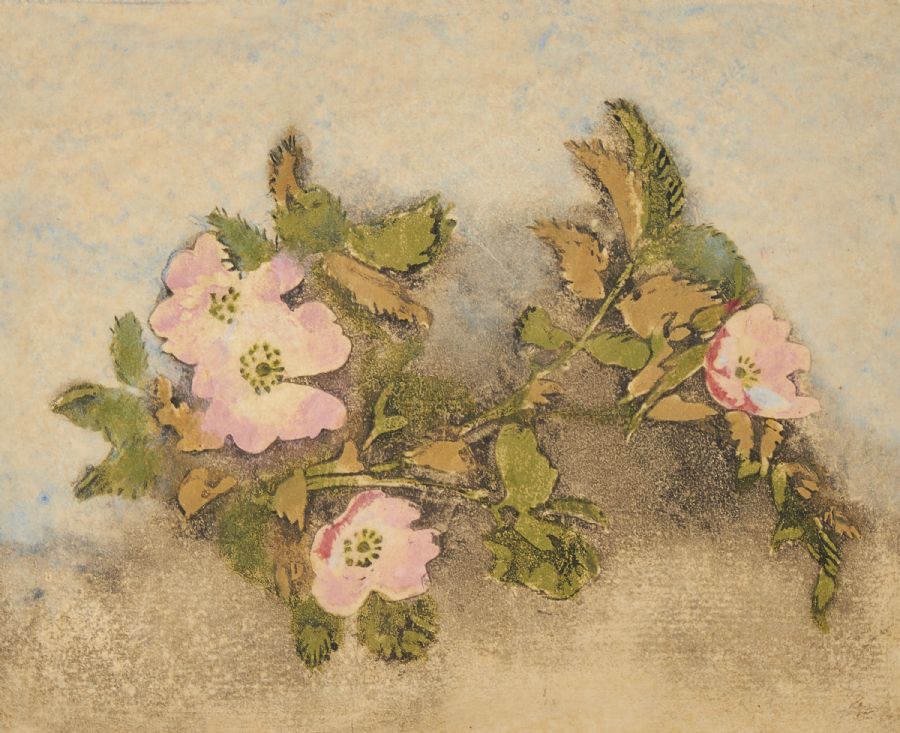 Träsnitt, Maja Fjaestad (1873-1961), 'Vildros', motivet: 23x29