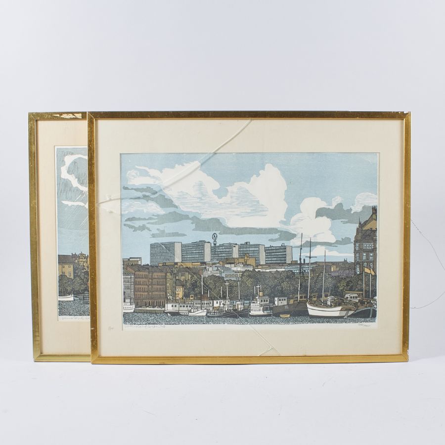 2 pcs, Svenolov Ehrén (1927-2004), Sweden. Signed, numbered 138/360. Image dimensions: 36x52cm, outer dimensions including frame: 52x67cm, trasigt glas.