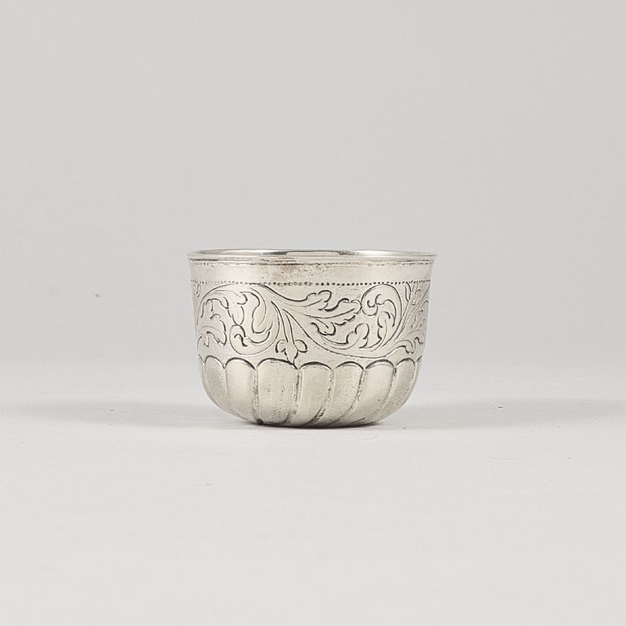 silver, otydliga stämplar. Höjd: 4,5 cm. Vikt: 47 gr