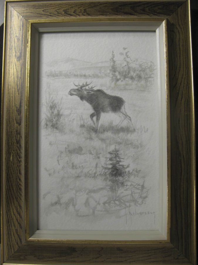 INK DRAWING (F), Halvarsson, 31 x 19, Älg på mosse