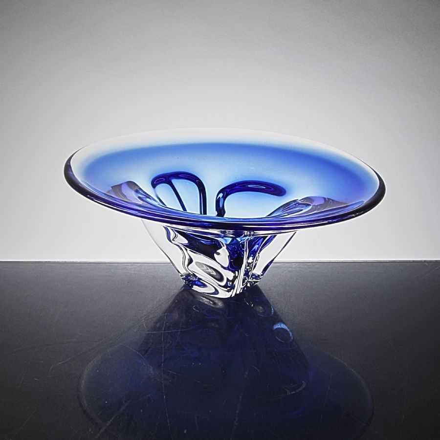 Vas, Chribksa, blått glas. Diameter: 30 cm. Höjd: 12 cm ca