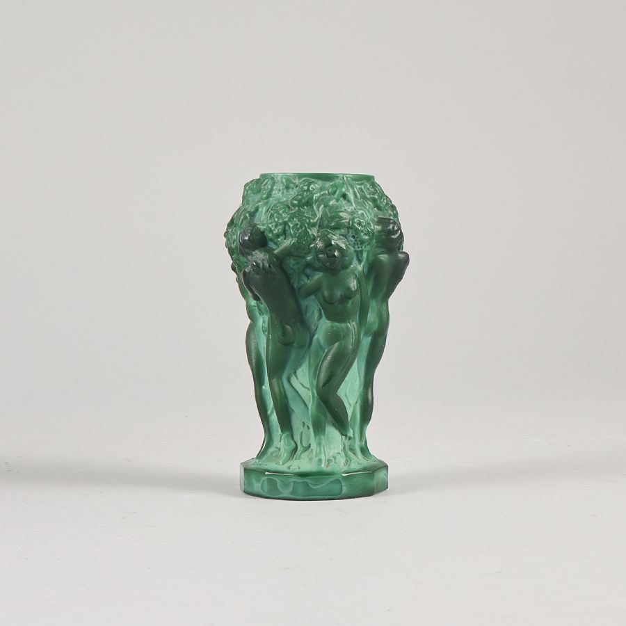 Jugend, dekor av gracer, grönt glas. Höjd: 13 cm