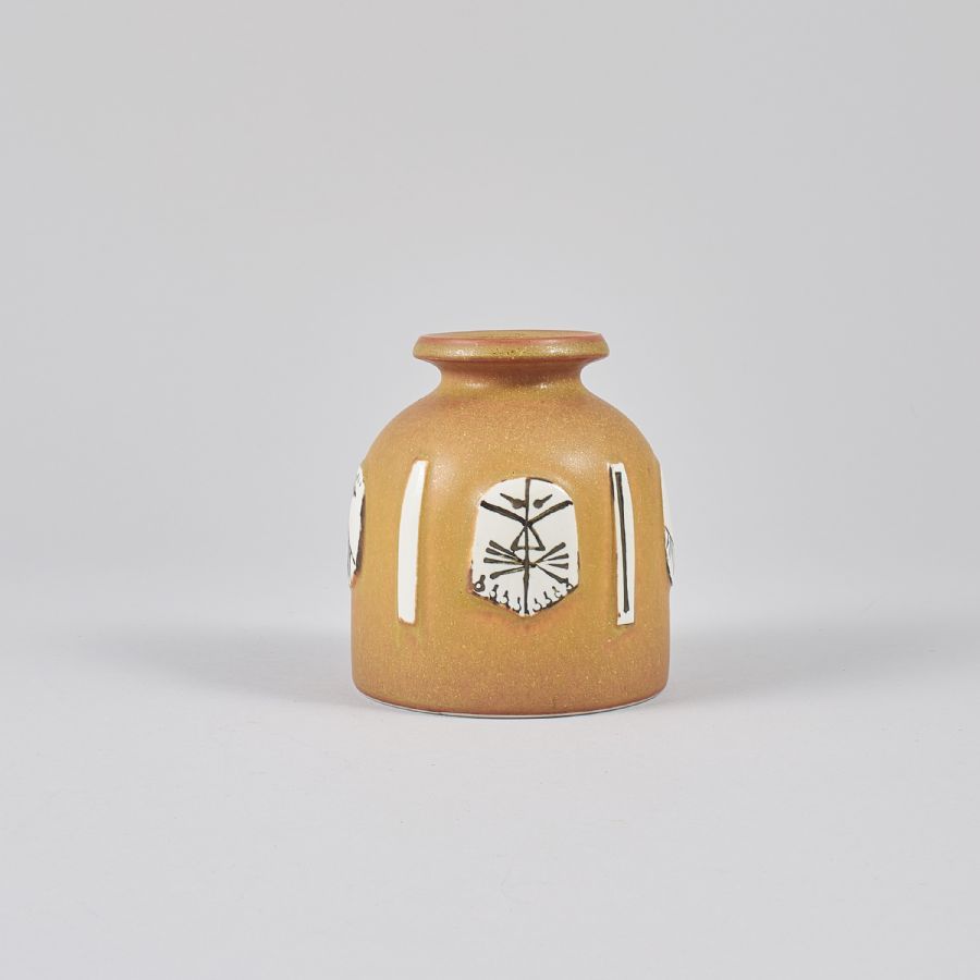 Lisa Larson (b. 1931), ur Thalia, Gustavsberg, Sweden 1960-1969, height: 12 cm, vit stengodslera med gul glasyr,