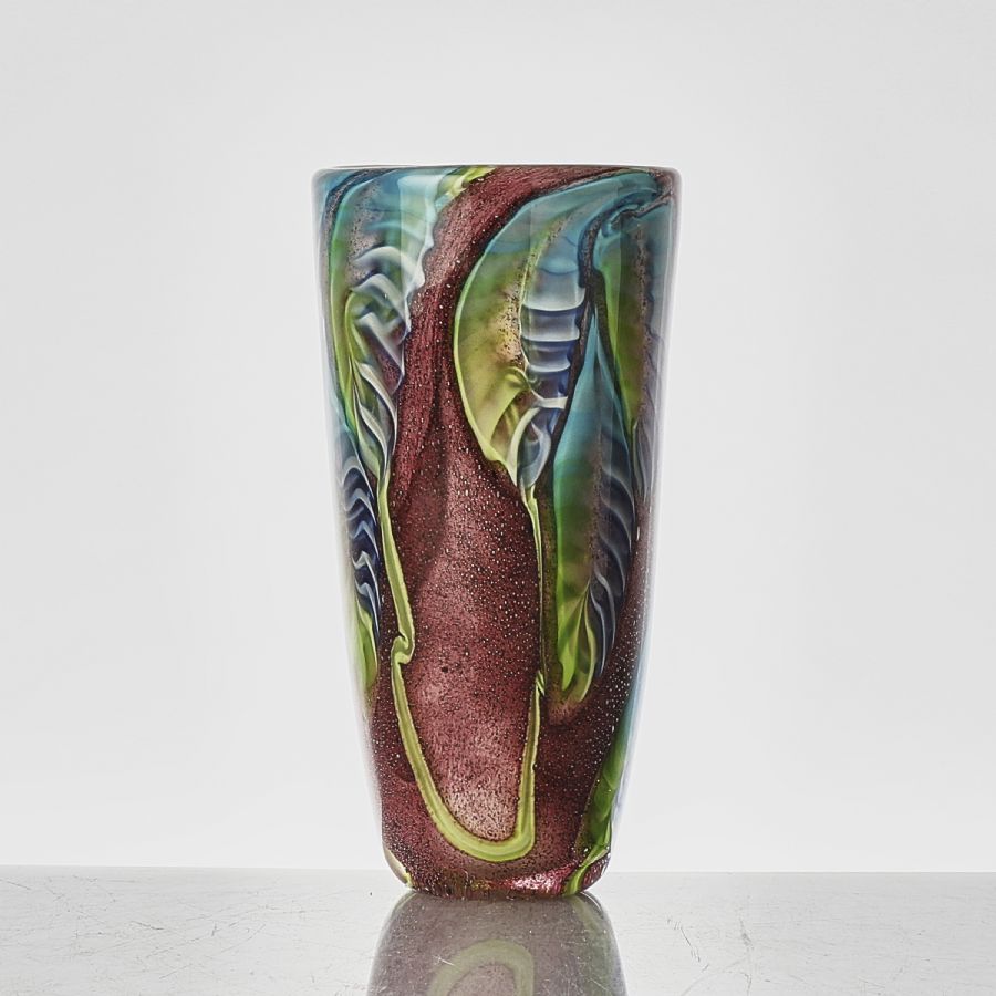 Konstglas. Höjd: 29 cm, diameter: 15 cm