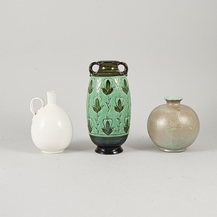 3 pcs, keramik including Ekeby. Height: 16-27,