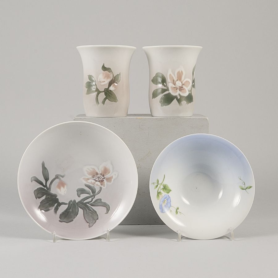 + skålar, 4 delar, Bign & GRöndahl, motiv av blomma. Diameter: 10-16,5