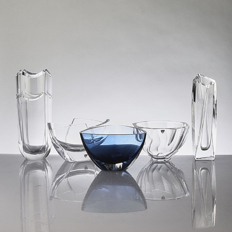 + skålar, Glas, 5 delar, bland annat Orrefors. Höjd: 12-31 cm