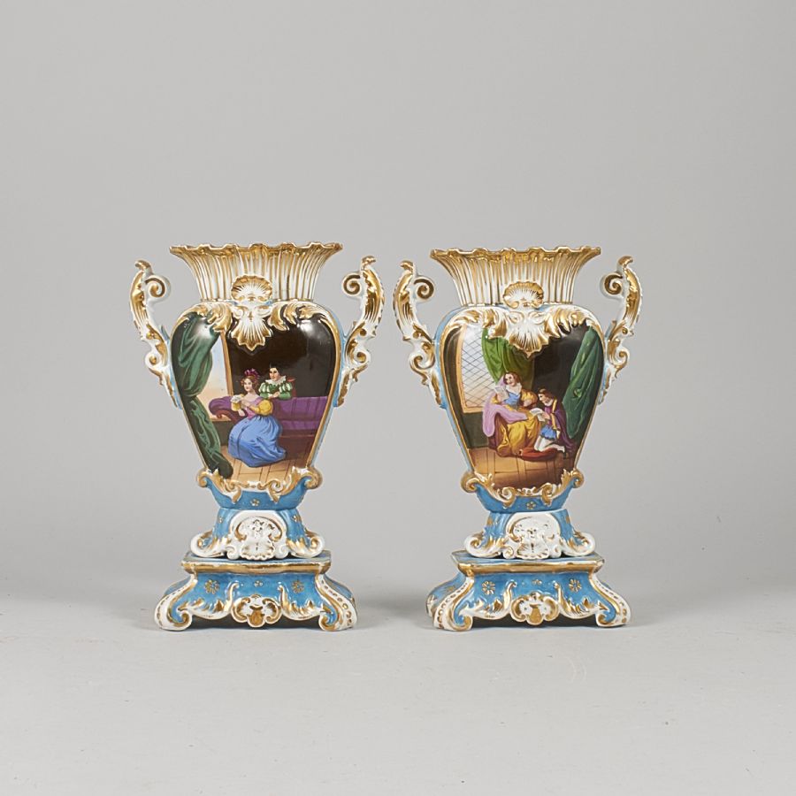 ett par, 1800-tal, porslin, blomsterdekor och förgyllning, höjd: 28 cm