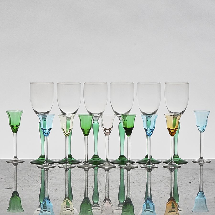 6 st + 9 likörglas. Höjd: 13,5-21 cm