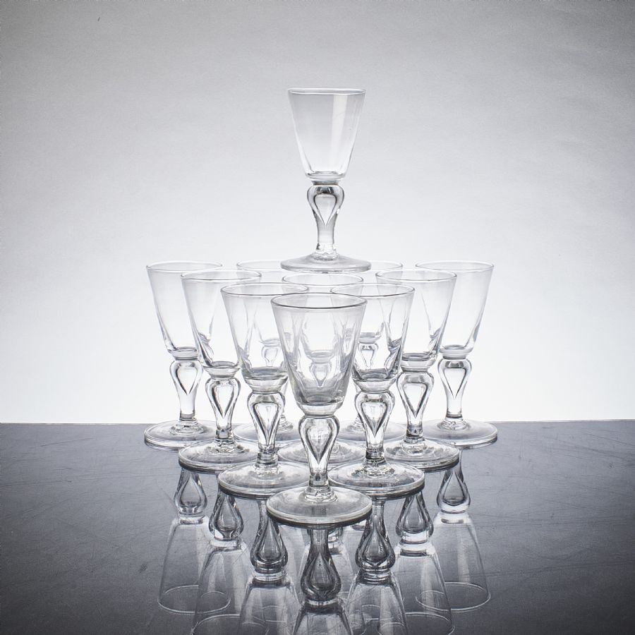 11 pcs, Reijmyre Glasbruk, 1951. Height: 17 cm,