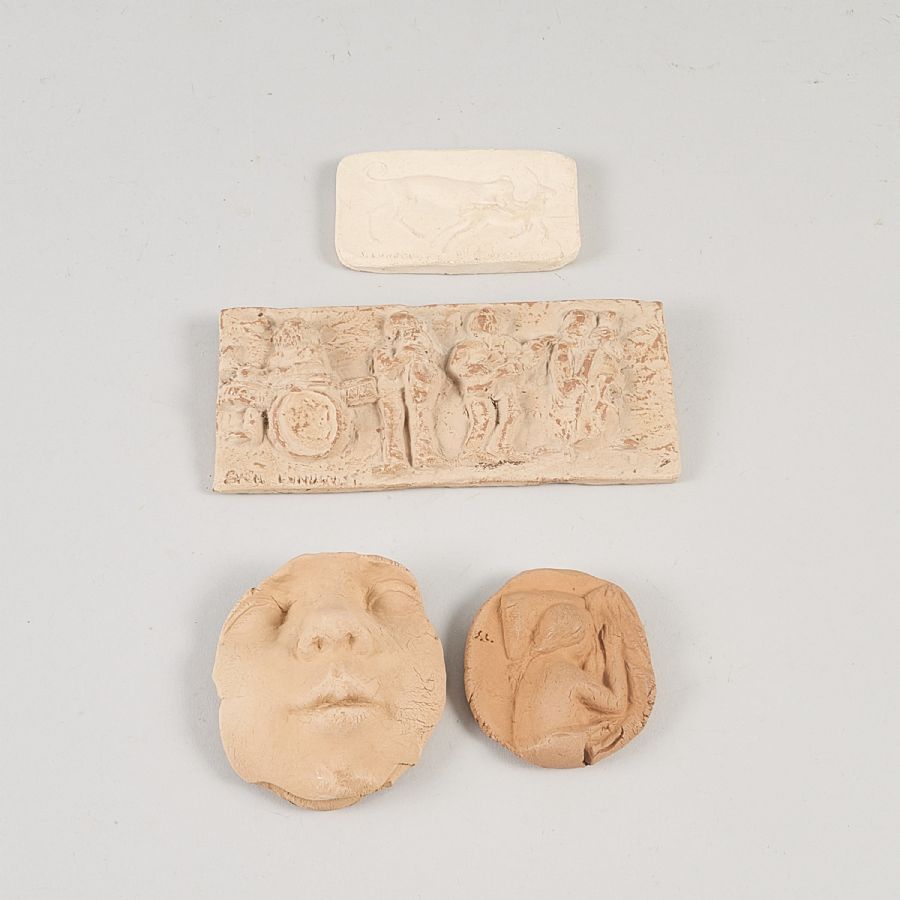 Väggreliefer, 4 st, Signerade. Längd: 6-17 cm