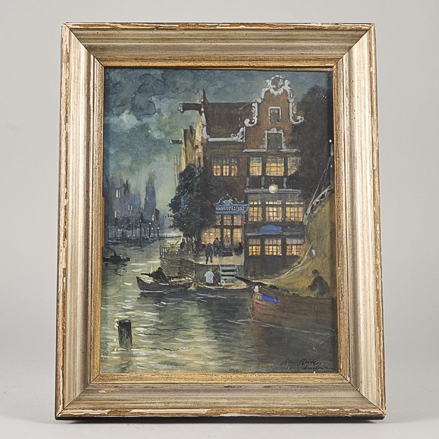 Alfred Heide, Signerad, Amsterdam, 31x23 cm, yttermått inklusive ram: 40x33