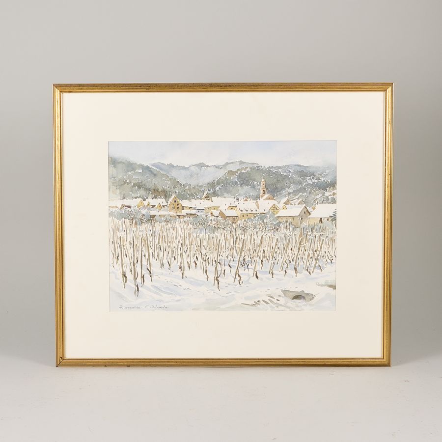 Christian Schwob, Signerad. Akvarell, bildmått: 32x41 cm, yttermått inklusive ram: 53x63 cm