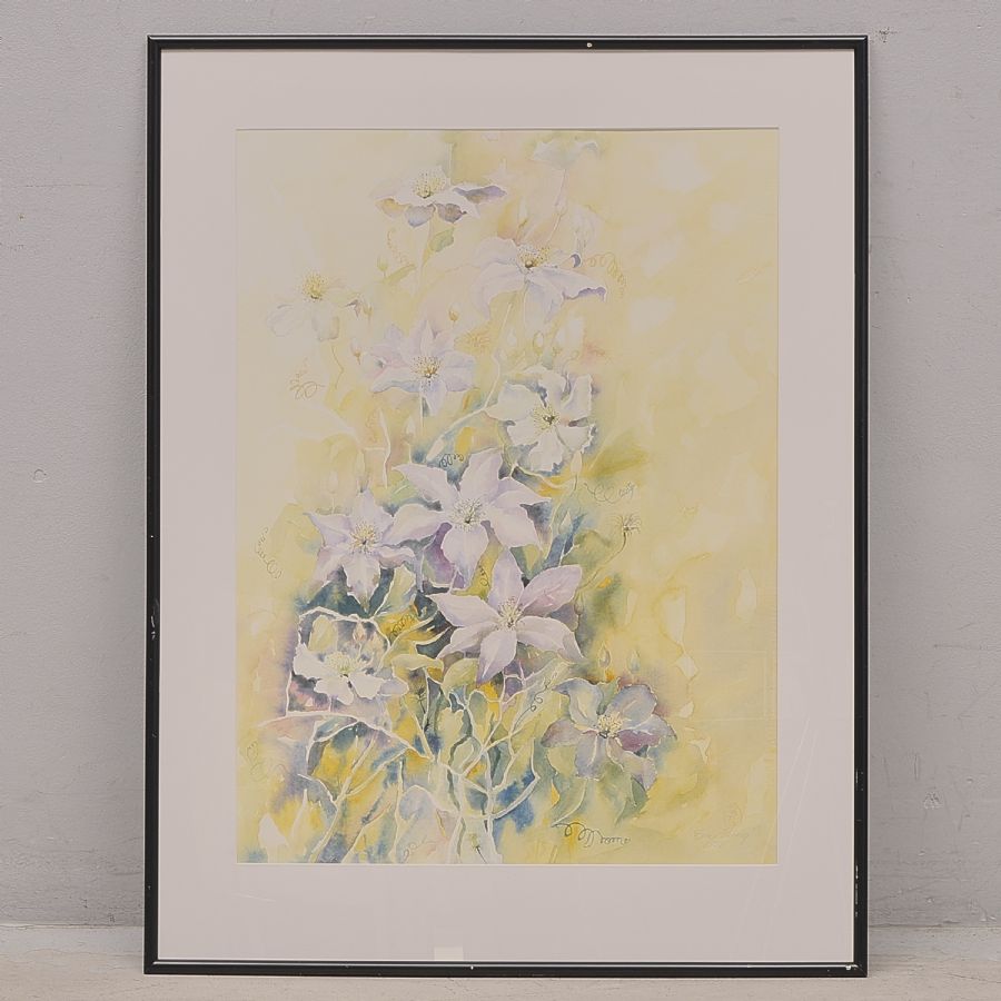 Eva Ekberg. Signed, dated 2003, Clematis. Watercolour, Image dimensions: 72x52 cm, outer dimensions including frame: 91x70,