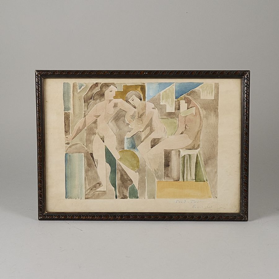Signerad, daterad Paris 21, modellstudie. Akvarell, bildmått: 28x36 cm, yttermått inklusive ram: 34x49 cm