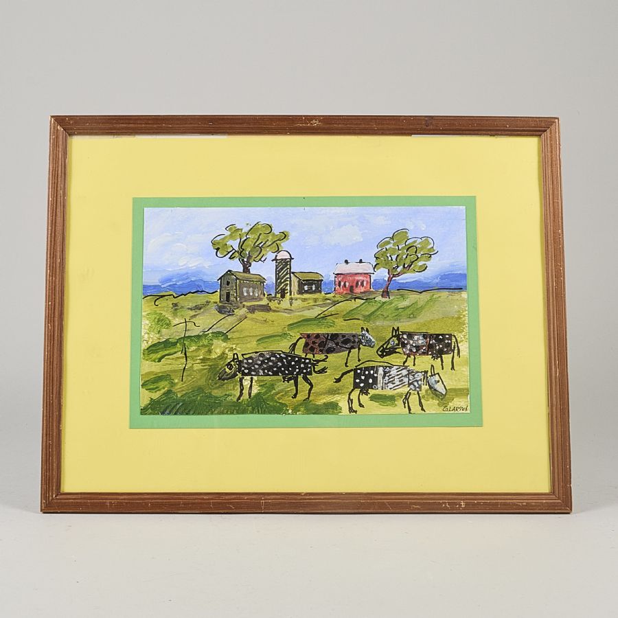 G. Larsson, "Sprallinge Gård" signerad. Akvarell, bildmått: 19x28 cm, yttermått inklusive ram: 32x42 cm