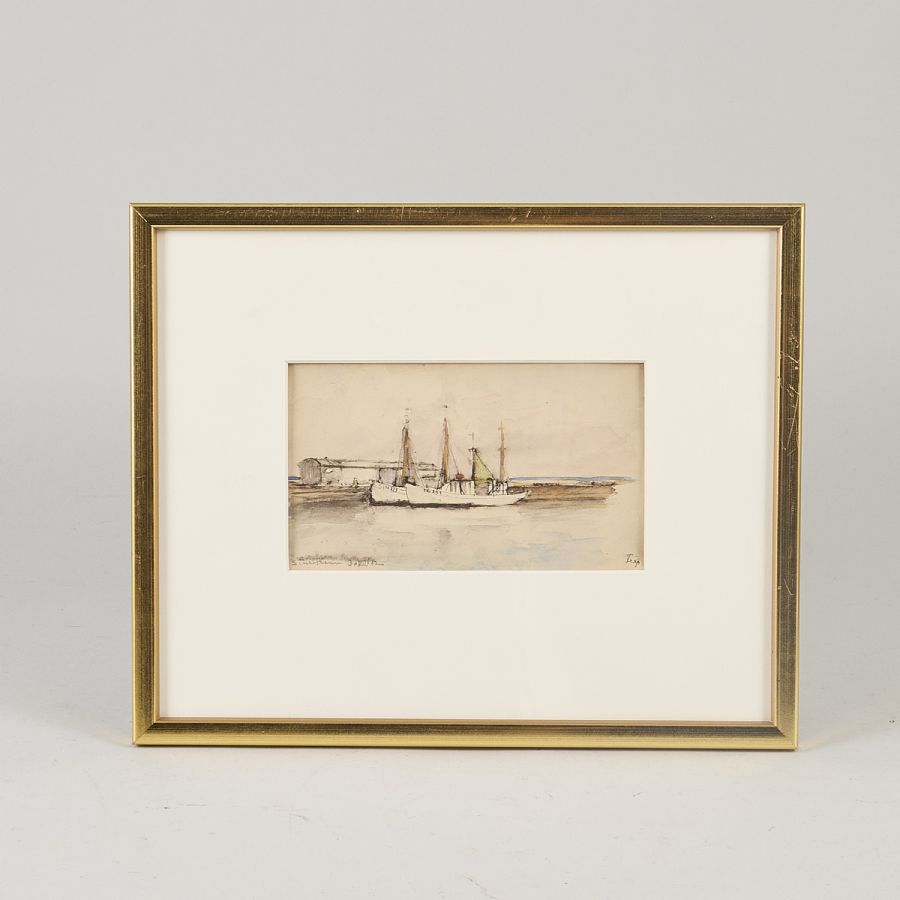 Monogramsigernad, datead - 52, Simrishamn. Akvarell, bildmått: 10x17 cm, yttermått inklusive ram: 26x32. Signerad